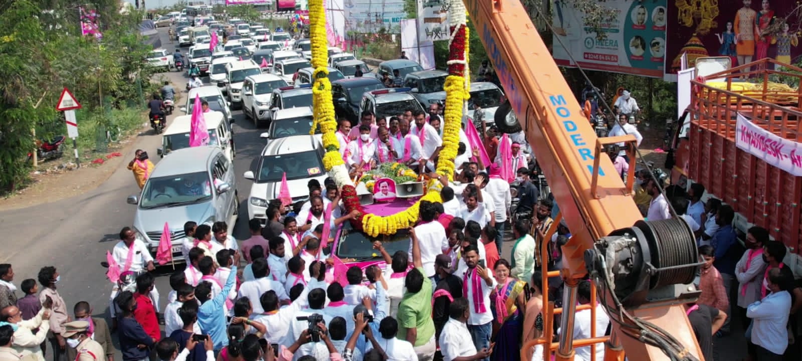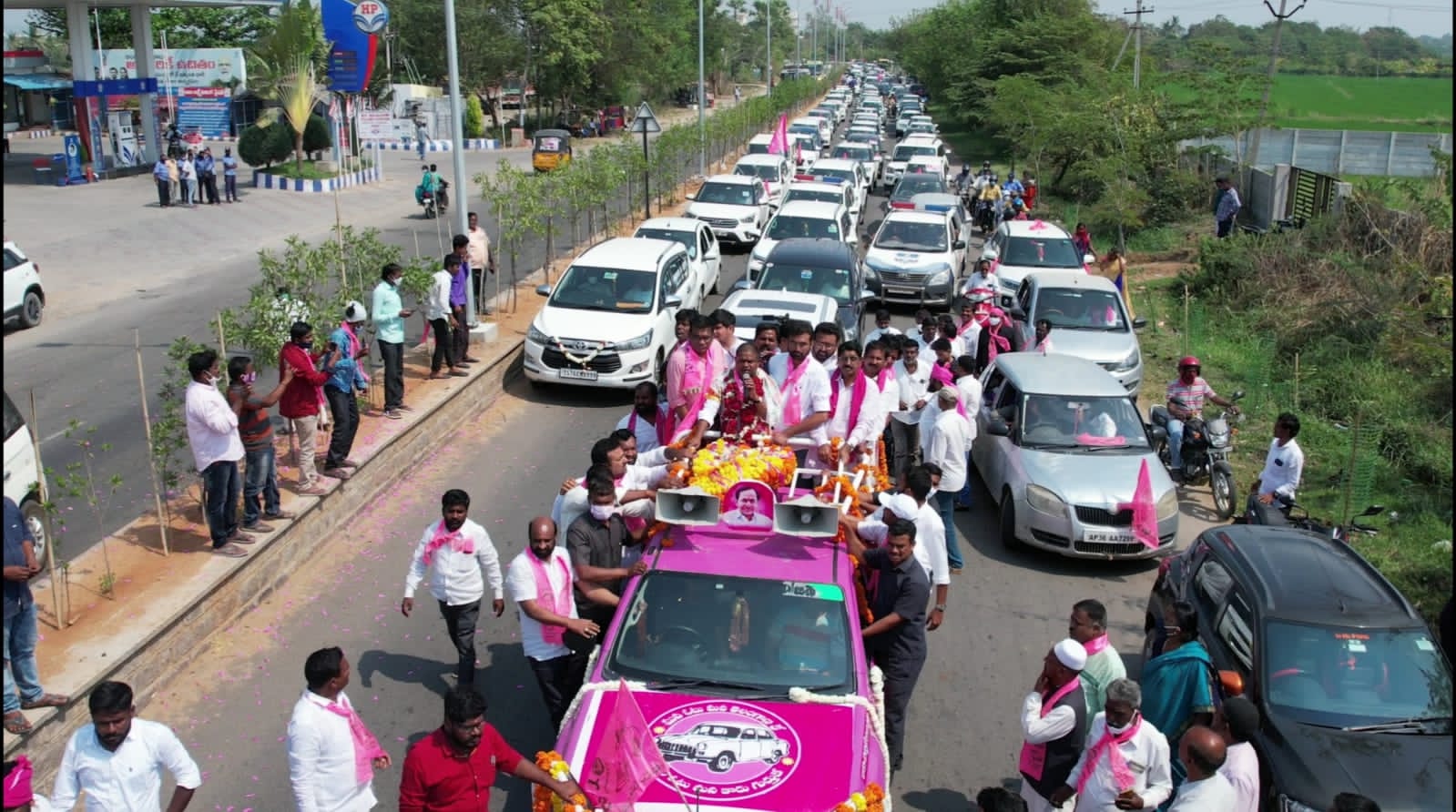 -అఖండ స్వాగతం పలికిన టీఆర్ఎస్ శ్రేణులు