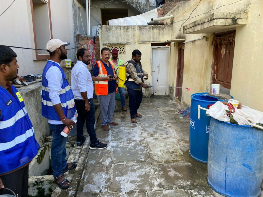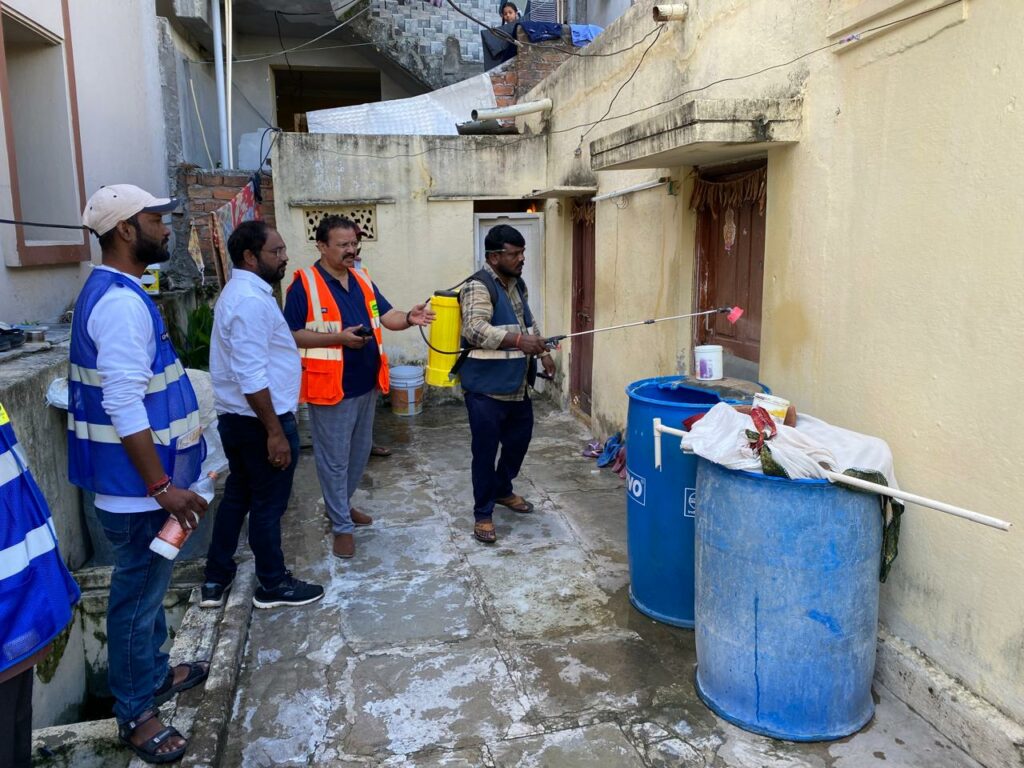 Hayat Nagar Circle Deputy Commissioner Dr. Tipparti Yadaya informed today morning that Nagol Mansurabad Hayat Nagar BN Reddy Nagar Division under Hayat Nagar Circle has taken emergency measures to prevent the spread of diseases like Dengue Malaria Chicken Gunya in Hayat Nagar Circle. In the colony, in Bhavani Nagar Hayatnagar Village and B. N. Reddy Nagar in Sachivalaya Nagar, all the entomology workers have been going from place to place to check their water tanks and also to remove the water from the tanks which have been stored for many days to check the breeding process of mosquito larvae in their water tank. Appropriate measures were taken by showing them Alpha Cyper Matrin liquid was sprayed on the walls and Temopus was placed in the water supply and people were also made aware to take appropriate measures to eradicate mosquitoes in their homes Assistant Entomologist Ravinder Reddy along with Field Assistants participated in this program.