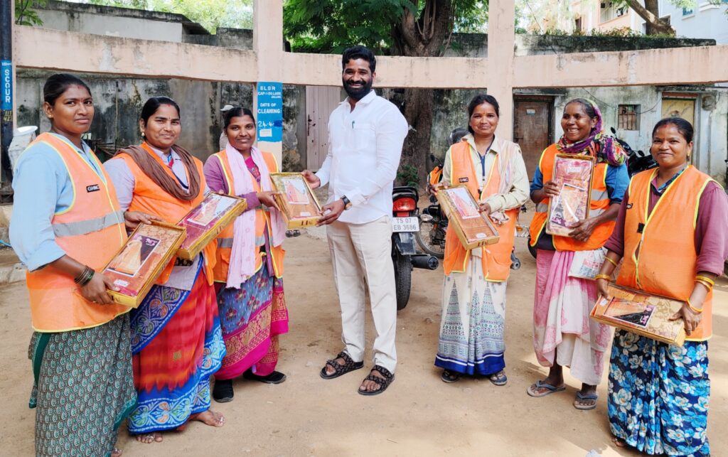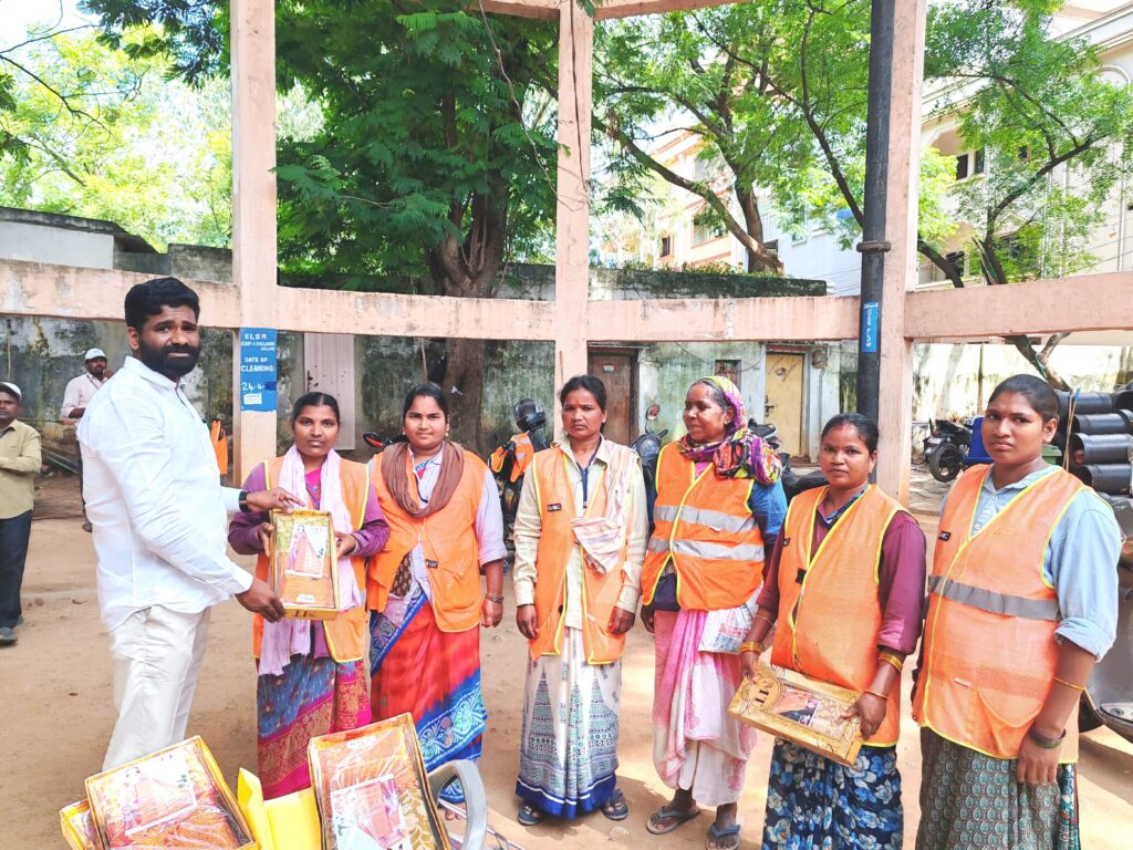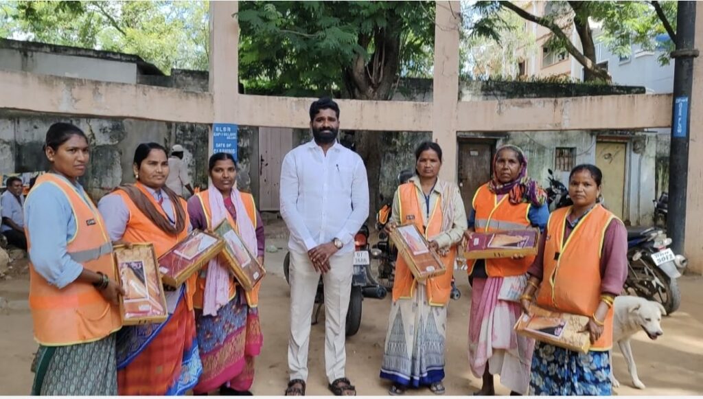 పారిశుద్ధ్య కార్మికులకు చీరలను పంచిన రవీందర్ యాదవ్