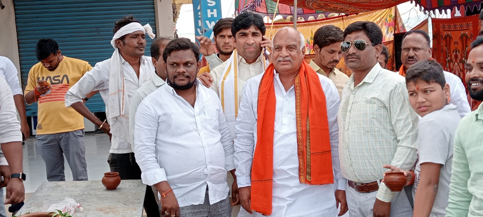ముధోల్ (తెలంగాణ వార్త) శోభకృత్ నామ ఉగాది నూతన సంవత్సరం సందర్భంగా ఈరోజు భైంసా పట్టణంలోని హిందువాహిని ఆధ్వర్యంలో ఏర్పాటుచేసిన ఉగాది పచ్చడి పంపిణీ కార్యక్రమంలో పాల్గొని ఉగాది పచ్చడిని స్వీకరించిన ముధోల్ అసెంబ్లీ బిజెపి నాయకులు పవార్ రామారావు పటేల్ గారు వీరితోపాటు మాజీ మున్సిపల్ చైర్మన్ బి. గంగాధర్ గారు, మాజీ మున్సిపల్ వైస్ చైర్మన్ లింగురాం గారు, వడ్నప్ శ్రీనివాస్ గారు ,అమూల్ గారు, తూముల దత్తు గారు , గణేష్ గారు, సురేష్ గారు, సుదర్శన్, జగదీష్ ,ప్రవీణ్, తదితరులు ఉన్నారు.