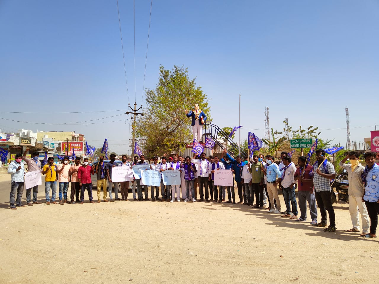 భారత రాజ్యాంగాన్ని మార్చాలని అనుచిత వ్యాఖ్యలు చేసిన కేసీఆర్ గారికి వ్యతిరేకంగా నందిపేట మండల కేంద్రంలో బహుజన్ సమాజ్ పార్టీ నందిపేట మండల అధ్యక్షులు బొర్రోల్ల సురేష్ గారి ఆధ్వర్యంలో భారీ ఎత్తున నిరసన కార్యక్రమం చేపట్టడం జరిగింది ఈ కార్యక్రమంలో ఆర్మూర్ నియోజకవర్గ ఇన్చార్జ్ కోమిరే సుధాకర్ గారు ఉపాధ్యక్షులు నాగరాజు జెనరల్ సెక్రటరీ సంతోష్ గారు మరియు మండల జనరల్ సెక్రెటరీ రాజేశ్వర్, ఉపాధ్యక్షులు అడేందర్ గారు కన్వీనర్ గౌతమ్, సుమన్, రాజు, సందీప్, అక్షయ్ మనోజ్, సాగర్, పులి రాజు వివిధ గ్రామాల బహుజన్ సమాజ్ పార్టీ కార్యకర్తలు పాల్గొన్నారు