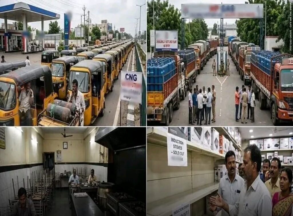తెలంగాణ వార్త: హైదరాబాద్ నగరాన్ని గ్యాస్ కొడతా కలవర పెడుతుంది C.N.G స్టేషన్లో వద్ద బారులు తీరుతున్న జనంతో హైదరాబాద్ నగరం కలవరంగా మారింది. బారులు తీరిన ఆటోలు చర్లపల్లి ప్లాంట్ వద్ద నిలిచిన లారీలు, పలు రెస్టారెంట్లు హోటల్లలో ఖాళీ కుర్చీలు, స్టోర్లలో నిండుకున్న ఇండక్షన్ స్టవ్లులు, ప్రజల ముఖంలో దిగులు ఇవి హైదరాబాద్లో కనబడుతున్న దృశ్యాలు గ్యాస్ సరఫరా ఇబ్బంది కొనసాగితే హైదరాబాద్ బంద్ అయి జనజీవనం స్తంభించడం కడుపుమండటం ఆర్థిక వ్యవస్థ కుదేలవడం ఖాయమని నిపుణులు హెచ్చరిస్తున్నారు.