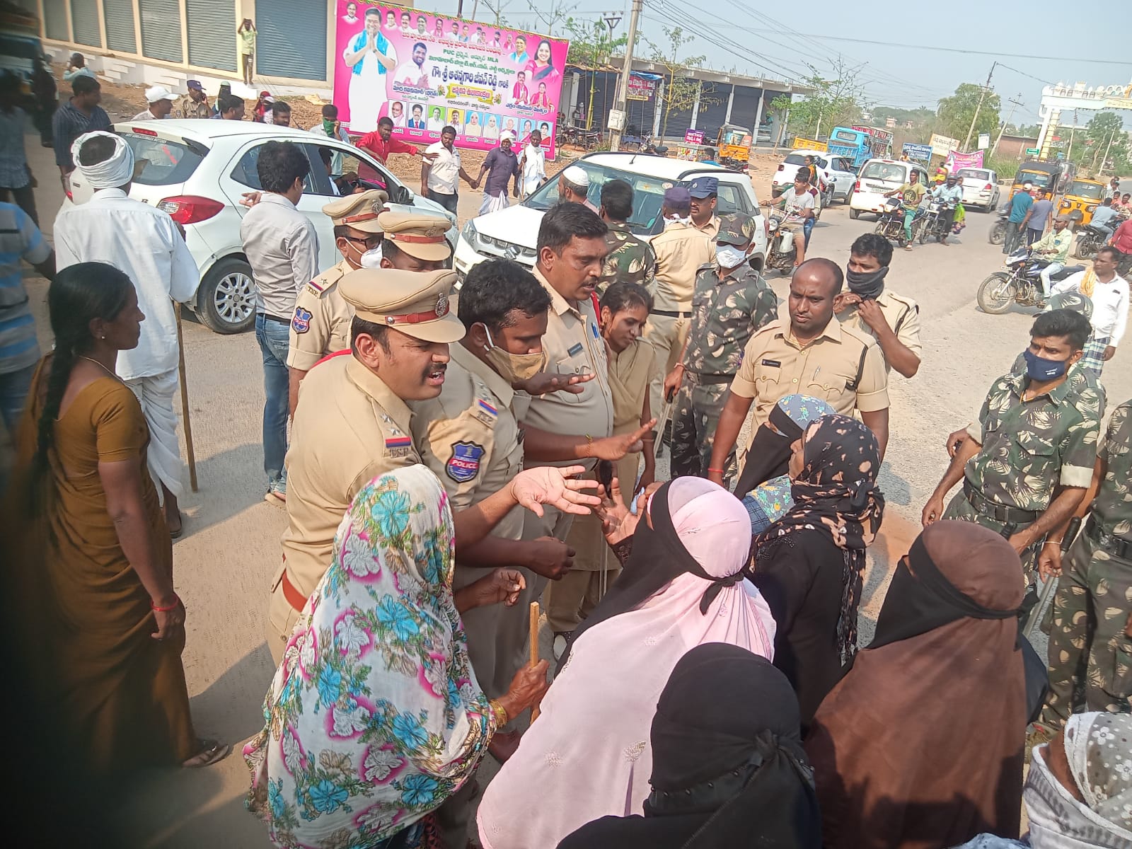 రాస్తా రోకో చేసిన మహిళలు,స్వల్ప తోపులాట
