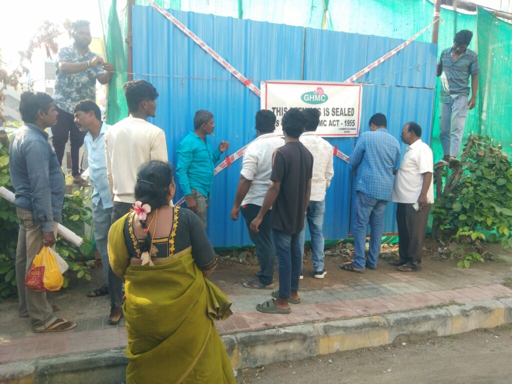 అడ్డుకున్న స్థానికులు భారీ పోలీసు బందోబస్తూ నడుమ బిల్డింగ్ లను సీజ్ చేసిన జిహెచ్ఎంసి అధికారులు…